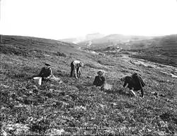 ![]() Picking blueberries by Anvil Creek. Mining activity can be seen along it in the distance (ca. 1901) | |