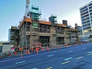 ![]() The south tower of Te Waihorotiu railway station under construction | |