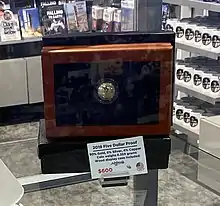 - ↑ Gilkes, Paul (January 18, 2019). "Proof 5-ounce silver dollar to cost $224.95 when it goes on sale starting Jan. 24". Coin World. Amos Pres. Archived from the original on July 20, 2021. Retrieved February 10, 2019.