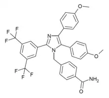 Apoptozole is a drug that acts as a potent and selective inhibitor of the heat shock protein Hsp70, and was one of the first compounds developed to act at this target. It induces apoptosis in susceptible cells, and displays anti-cancer, anti-malarial and antiviral activity. The promising results in animal studies makes it likely that either apoptozole or compounds with similar modes of action will be further researched as potential therapeutics in the future.[1][2][3][4][5]