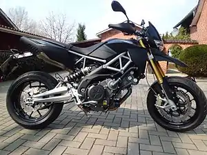 The Aprilia Dorsoduro is a line of V-twin, supermotard-class motorcycles built by Aprilia, a subsidiary of Piaggio & C. SpA. The Dorsoduro line comprises three models: the 750 cc original, the later 1200 cc variant, and the final 900 cc version. All have similar appearances but have few common parts. The model was named after the Dorsoduro region of Venice, whose name translates to "hard ridge".