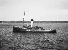 After refit Apu resumed her duties on the Archipelago Sea as a state-owned icebreaker and remained in service through the Second World War until 1959 even though during her last years in service her assistance in the Archipelago Sea was described being "more of a moral nature".[8] The 60-year-old icebreaker was decommissioned on 7 April 1959 and broken up shortly afterwards. She was replaced by the second Karhu class icebreaker, Murtaja.[9]