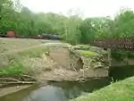 The Fifteen Mile Creek Aqueduct (#9) was begun in 1838. Contracts were abandoned, work was restarted, and finally was completed in Summer 1850 at a cost of $28,119.51.[3]: 240 This aqueduct is just upstream of Little Orleans, Maryland.