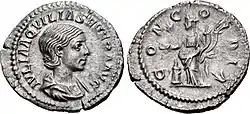 ![]() Aquilia Severa, in a coin celebrating Concordia | |