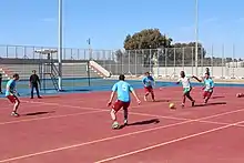 The outside sport fields have fields for sports such as: a Five-a-side soccer, Basketball, Handball, Volleyball, Tennis and Badminton and has a stadium for over 2500 persons.