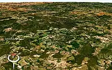 The Araguainha crater or Araguainha dome is an impact crater on the border of Mato Grosso and Goiás states, Brazil, between the villages of Araguainha and Ponte Branca.[1] With a diameter of 40 kilometres (25 mi), it is the largest known impact crater in South America.