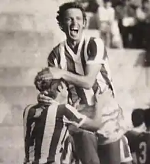 In the following years, Minga was also named team captain.[1] In the 1980' Minga would be part of Tirana's golden generation along with players such as Agustin Kola, Mirel Josa, Sulejman Mema, Shkëlqim Muça, Bedri Omuri and Millan Baçi, winning four championships and three cups.[2] He also received offers from Dinamo and Partizani to join them, and also friends and colleagues tried to convince him.[1] Dinamo also offered him a very lucrative house which Minga turned down, saying: Thank you for evaluating me, but I cannot leave 17 Nëntori.[1]