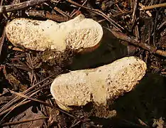 - 1 2 Verbeken A, Stubbe D, van de Putte K, Eberhardt U, Nuytinck J (2014). "Tales of the unexpected: angiocarpous representatives of the Russulaceae in tropical South East Asia". Persoonia. 32: 13–24. doi:10.3767/003158514X679119. PMC 4150074. PMID 25264381.