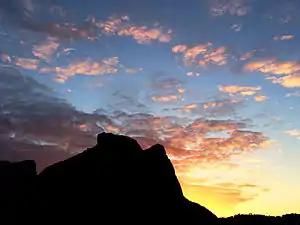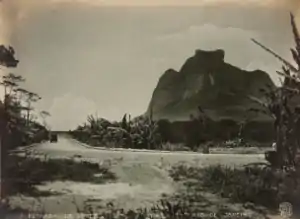 Many people throughout the years have believed there to be an inscription carved into the rockface of the mountain.[2] Reportedly, Christian missionaries were the first to notice these "markings", and they reported their findings to John VI, the King of Portugal at the time; his son, Pedro I of Brazil later looked into these theories.[3][4] According to Paul Herrmann in his book Conquests by Man, for many the inscription on the mountain was attributed to "some unknown prehistoric American people" until some began to speculate that the characters were of Phoenician origin.[2]