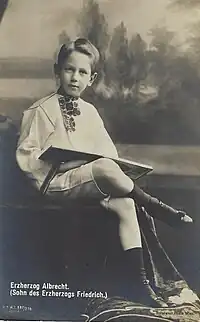 Albert Franz Josef Karl Friedrich Georg Hubert Maria, Archduke of Austria, Prince Royal of Hungary and Bohemia, Duke of Teschen (In German: Erzherzog Albrecht Franz Josef Karl Friedrich Georg Hubert Maria von Österreich, Herzog von Teschen) – (24 July 1897 – 23 July 1955) was a member of the House of Habsburg and titular pretender to the Duchy of Teschen.