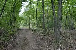 Site 44-AU-154 lies on the southern side of Paine Run at the mouth of its hollow, on the edge of the national park and at the foot of the Blue Ridge, thus occupying a transition zone between the Shenandoah Valley and the mountain. It extends from the stream to the base of the mountain, approximately 25 metres (82 ft) north to south, while east to west it is four times as long.[3]:66 At the time of its discovery, a Forest Service fire road bisected the site; the northern half was partially occupied by a privately owned house, while the southern half was part of the national park.[3]:67 Approximately 400 metres (1,300 ft) east of the site is a rock outcrop with several rockshelters, including the significant Paine Run Rockshelter.[3]:71
