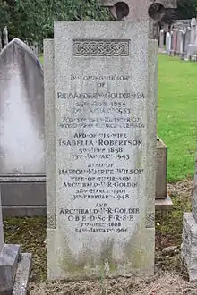 He died in Edinburgh on 24 January 1964. He is buried with his parents and first wife in the Grange Cemetery on the east side of the south-west extension. The Journal of the Royal Meteorological Society published his obituary in July 1964.[5]