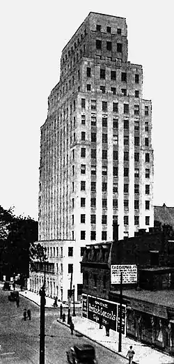 It was designed by Montreal architecture firm Ross and Macdonald, and was constructed between 1930 and 1931.[1][2][3][4] It stood 17 stories tall, equivalent to 69.82 m in height. Its architectural style was considered to be Art Deco.[4] The Architects' Building was designed shortly after the same firm's celebrated Édifice Price in Quebec City and showed similarities in its style and massing. As the building's name suggests, Ross and Macdonald did in fact locate their own offices on the 13th floor of the building from its 1931 opening until about 1934.[5]
