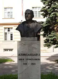 Bust of King Aleksandar I in courtyard of the Archives of Yugoslavia