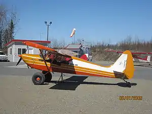 The Arctic Aircraft Arctic Tern (named after the bird) is a bush plane that was produced in small numbers in Alaska in the 1970s and 1980s. It is a strengthened and modernised version of the Interstate Cadet of the 1940s. It is a high-wing braced monoplane with fixed tailwheel undercarriage. It has two seats in tandem, with the rear seat removable for added cargo carriage. It is also provided with a cargo loading door in the fuselage side to facilitate loading bulky items. Optional fittings included floats or skis in place of the wheeled undercarriage, and a ventral pod to carry extra cargo or fuel.