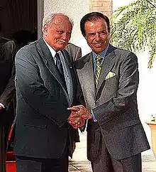 In 1992, Hungarian Foreign Minister, Géza Jeszenszky, paid a visit to Argentina.[7] In March 1993, Argentine Foreign Minister, Guido Di Tella, paid an official visit to Hungary. In April 1997, Hungarian President, Árpád Göncz, paid an official visit to Argentina, becoming the first Hungarian head-of-government to do so. During his visit, he met with Argentine President, Carlos Menem.[3]