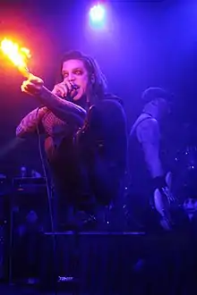 In 2007, ex-Misfits lead guitarist Doyle Wolfgang von Frankenstein was looking for a vocalist for his solo band project, Gorgeous Frankenstein and finally recruited Landon Blood for the recording of an eponymous album.[14] Blood left the band shortly after and was replaced by Argyle Goolsby who played bass and performed vocal duties for Gorgeous Frankenstein first tour, opening for Danzig.[15] Dr. Chud (drums) and Stephanie Bellars (aka Gorgeous George, Doyle's ex-wife) were also part of this line up.[16]