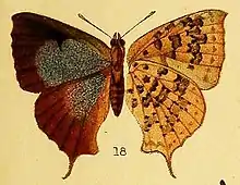 Described as an aberration of Arhopala japonica, it is above like dodonaea, beneath with a denser, more intense colouring and somewhat removed macular markings.[3]