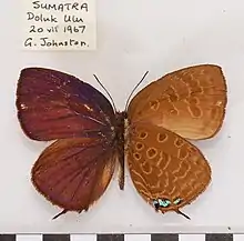 - ↑ Seki, Y. & Takanami, Y. and Otsuka, K., 1991. Butterflies of Borneo Vol. 2, No. 1. Lycaenidae. Tobishima Corporation, Tokyo