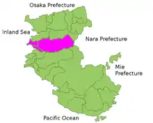 Location of Arida District in Wakayama Prefecture