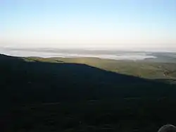 A segment of 20.4 miles (32.8 km) winds from Havana north through the Ozark National Forest to an area south of Paris.[7] The route passes by Mount Magazine, which at 2,753 feet (839 m) is Arkansas's highest point.[8] Recreation areas include Cove Lake and Mt. Magazine Recreation Areas, with views of Blue Mountain Lake available from an overlook.[9] Many current camp sites are former home sites that were bought by the government during the depression.