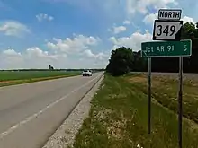 Highway 349 (AR 349, Ark. 349, and Hwy. 349) is a designation for two state highways in Northeast Arkansas. One route of 4.45 miles (7.16 km) begins at Highway 226 and runs north to Highway 18/Highway 91. A second route of 2.44 miles (3.93 km) begins at Highway 230 and runs north to Highway 228. Both routes are maintained by the Arkansas Department of Transportation (ArDOT).