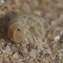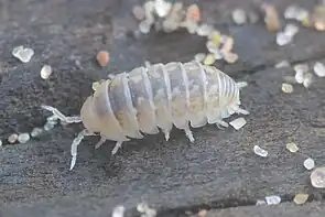Armadillidium album, also known as the beach pill woodlouse, is a species of isopod within the family Armadillidiidae.[1] The species is salt tolerant,[2] inhabiting coastal sand dunes and saltmarshes within Europe. They can sometimes be found under driftwood or burrowed within grains of sand of which their colour pattern mimics.[3]