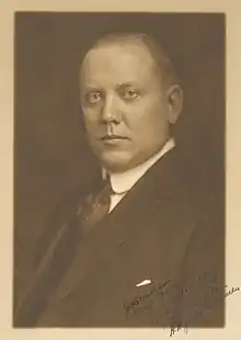 Saastamo was the head of the Savo District Civil Guard in 1917 and secretary of the Northern Savo and Kainuu military district during the Finnish Civil War in 1918.[2] After the war, he became Finland's first Envoy to Copenhagen (1918-1919) and then to Washington (1919-1921). He returned to Finland for the post of Envoy to work in his family business H. Saastamoinen Ltd, H. Saastamoinen & pojat Oy and Saastamonen Oy 1921. In this position, he continued until 1926 when he focused on social tasks. He was a Member of the Parliament in 1924-1926 from the National Coalition Party. Saastamoinen was appointed Finland's Envoy to London and The Hague in 1926. He was serving these duties until his death. Saastamoinen died in London in 1932.[3][4]