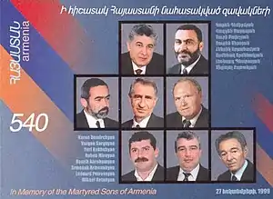 - 1 2 Wines, Michael (29 October 1999). "3 Charged in Armenia Parliament Seizure". New York Times. Retrieved 12 April 2013.