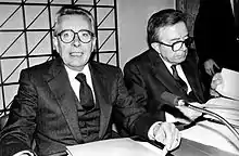 In 1982, Forlani tried again to become DC Secretary, but he was defeated by his former deputy secretary Ciriaco De Mita, who was now supported also by Fanfani.[6] In 1983 the Socialist leader Bettino Craxi was appointed Prime Minister by President Sandro Pertini and Forlani became his Deputy Prime Minister.[34][6]