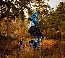 ![]() Quinze and his sculpture Mojave, a Chroma Lupine | |