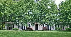 In 1923, Goss purchased this 600-acre property near Ann Arbor in part to develop a herd of Jersey cattle. He immediately had this house build, using plans created by Detroit architect George DeWitt Mason. The estate grounds around the residence were designed by Italian landscape architect and director of the Nichols Arboretum, Aubrey Tealdi, in the 1920s. Goss continued to live here until his death in 1938. He was survived by his wife Gertrude and three children. His youngest son, Kelly, moved into the house in the 1960s with his family. Kelly sold off most of the acreage surrounding the house, with only 40 acres left by 1980. In 1985, the house and surrounding five acres was purchased by the Bund family.[2]