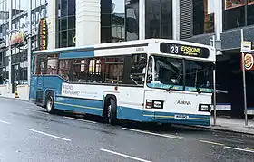 In November 1994, Clydeside 2000 was sold to British Bus, who had just completed the take over of shareholder Luton & District.[3] The new parent company began investing heavily in the ageing fleet. A more vibrant red, white and yellow livery was introduced, and new "Flagship" routes were created to raise quality levels.[2] Clydeside Buses was included in the 1 August 1996 sale of British Bus to the Cowie Group,[4][5] which in November 1997 was rebranded as Arriva.[6]