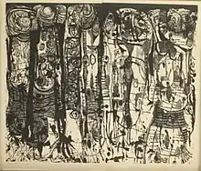 Arthur Deshaies (19202011) was an American printmaker and painter who made non-geometric abstractions in a style he called "abstract impressionist."[1] After his death a curator described a dominant aspect of Deshaies' prints, calling them "biomorphic, surrealist fantasies."[2] Deshaies showed frequently in commercial and academic galleries and in museums and his work frequently received critical notice. He employed traditional printmaking techniques and also used new techniques including one that he called stencil-offset and another which employed sheets of plastic as the matrix. His long career as an artist was matched by an equally long career as an art teacher.