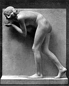 Most of his works were nude figures, but he also created busts. Much of his ironwork was lost or stolen during World War II, and is presumed to have been melted down for war materiel. This can be verified in the case of a group, depicting Martin Luther and some associates, that stood in front of the parish hall in Berlin-Zehlendorf. In 1943, it was officially declared a "Metallspende des deutschen Volkes" (metal donation of the German people) and dismantled.[4] A bronze lion, in front of the artillery barracks in Eberswalde, was probably put to use on the spot.[5]