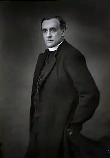 Born on 21 June 1839,[2] he was educated at Rugby and Trinity College, Oxford,[3] and ordained after a period of study at Ripon College Cuddesdon in 1862. His only post was as Curate at St Alban's, Holborn,[4] 1862–1913.[5] Stanton was an indefatigable champion of the poor, staunch champion of rituals, and exuberant preacher. He attracted devoted supporters and horrified critics in equal measure. In 1877, he founded a society for postmen, the Saint Martin's League.[6] At the end of his life he was offered, and rejected, a prebendal stall in St Paul's Cathedral.[7]
