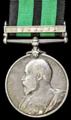 While no British Army units took part in the campaign, 183 European officers and 80 European NCOs seconded to local forces received the silver medal, as well as 131 European civilians, mainly local administrators and doctors. Some 4,000 locally recruited troops and constabulary received the medal in silver.[2]