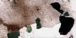 Sentinel-2 image of the final stretch of river Ashchysu and its mouth in Alkamergen lake