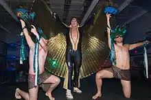 Castle is frequently accompanied to the ring by two shirtless, mask-wearing men, referred to as his "Boys", who act as human furniture and fan Castle during his matches.[5]