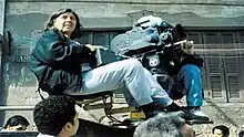 Egyptian filmmaker Asma El Bakry operating a camera dolly