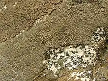 Aspicilia phaea (dusky sunken disk lichen) is a grayish brown to tan areolate crustose lichen commonly found on rock in coastal to inland parts of central and southern California. Described as new to science in 2007,[1]:227[2] it is endemic to (only found in) California.[3] It grows on exposed or partially shaded siliceous rock, with a few known occurrences on serpentine rock.[2]