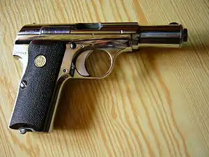 This weapon was originally used by the Spanish prison administration in the 1920s, in 1928 the pistol was then used for the first time by the Spanish Navy.[2] In the 1930s, the Astra 300 was primarily an army pistol. In 1937–1938, the USSR purchased a small number of Astra 300 pistols from the Spanish Republic. Richly trimmed, they were used as awards. In particular, the People's Commissariat of Defense of the Soviet Union Kliment Voroshilov handed over the M300 of the luxury model to the Soviet pilots such as Vasily Stalin, Timur Frunze, and Sergey Mikoyan. Larger weapons, with significant "representative" dimensions, such as the 7,63-mm Astra pistols of models 901-903, were handed over either to military leaders or to the highest commanding staff of the NKVD.[3] During World War II, it was mainly supplied to the German Wehrmacht, which was stationed in France. Between October 1941 and July 1944, a total of about 85,000 copies of the Astra 300 were delivered from neutral Spain to Berlin in Nazi Germany.