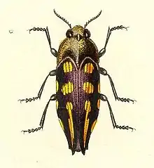 2. Gory, H.L. & Laporte de Castelnau, F.L. (1837). "Histoire Naturelle et Iconographie des Insectes Coléoptères. Monographie des Buprestides. Histoire naturelle de iconographie des insectes Coléoptères. Monographie des buprestides. Buprestis, Nascio, Acherusia, Asthraeus, Bulis, Acantha, Apatura". 1 (12–16). Paris: P. Duménil: 65-160 pp. [2]. {{cite journal}}: Cite journal requires |journal= (help)CS1 maint: multiple names: authors list (link)
