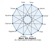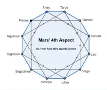 Mars' 8th aspect - One Dodecagram drawn in orange color