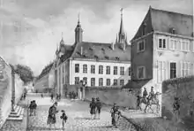 On 15 May 1585, Pope Sixtus V signed a Papal bull granting the Jesuit Order the right to establish a school in Luxembourg.[1] The school was eventually founded in 1603 by the Jesuit Order,[2][3] and was located next to the Notre Dame Cathedral, in the Ville Haute quarter. It was modelled on the Jesuit school in Trier. The school flourished and in 1684 it was expanded.[4] After the Suppression of the Society of Jesus by Pope Clement XIV in 1773, the school was renamed the Collège royal,[5] and was put under auspices of the clergy. Furthermore, the school's curriculum was reformed and expanded.