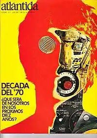 Atlántida was eclipsed by its longtime rival, El Hogar, during the 1940s and '50s, and it became a monthly publication. The magazine's distinctive watercolor covers were created by Spanish illustrator Roberto Martínez Baldrich between 1953 and his death in 1959, after which its covers adopted a news magazine format. Atlántida was affected by competition from a growing number of news magazines in Argentina during the 1960s, notably Panorama, Primera Plana, and Siete Días Ilustrados, among others. The 1965 launch of Gente, a celebrity magazine, by its publishers further diffused its readership, and Atlántida became largely devoted to cultural and current events commentary.[1] The magazine closed in 1970.[2]