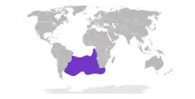 The IUCN list this species as endangered,[1] with an occurrence range of 16,800,000 km2 (6,500,000 sq mi) and a breeding range of 80 km2 (31 sq mi). A 2001 population estimate breaks down the population and shows some trends. Gough Island has 5,300 breeding pairs,[10] between 16,000 and 30,000 breeding pairs on Tristan da Cunha Island, 4,500 on Nightingale Island, between 100 and 200 pairs on Middle Island, and 500 pairs on Stoltenhoff Island,[11] and 1,100 on Inaccessible Island.[12] This adds up to between 27,500 and 41,600 pairs per year for the total between 55,000 and 83,200 total adult birds. This population estimate was done in 1983, however and is outdated. Trends suggest a 50% decrease over 72 years.[9]