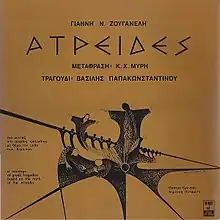 Atreides is Yannis Zouganelis' third studio album. The album contains songs written for the play of the same name which was a "montage of Greek tragedies based on the myth of the House of Atreus". The play included pieces from Oresteia by Aeschylus, Electra by Sophocles, and Iphigenia at Aulis, Iphigenia in Tauris, and Orestes by Euripides translated and adapted from the Ancient Greek by Kostas Myris, who also wrote the lyrics of the songs which were sung by Vasilis Papakonstantinou.[1] The play was performed by "Theatro Erevnas" of Dimitris Potamitis at the Mount Lycabettus theatre in Athens and later broadcast by the Greek national television ERT on 12 November 1979.[2]