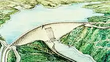 A concept drawing of the Auburn Dam, from the U.S. Army Corps of Engineers