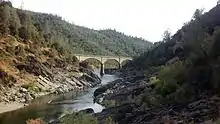 The proposed site of the Auburn Dam; the original concrete dam footing is visible to the right of the river